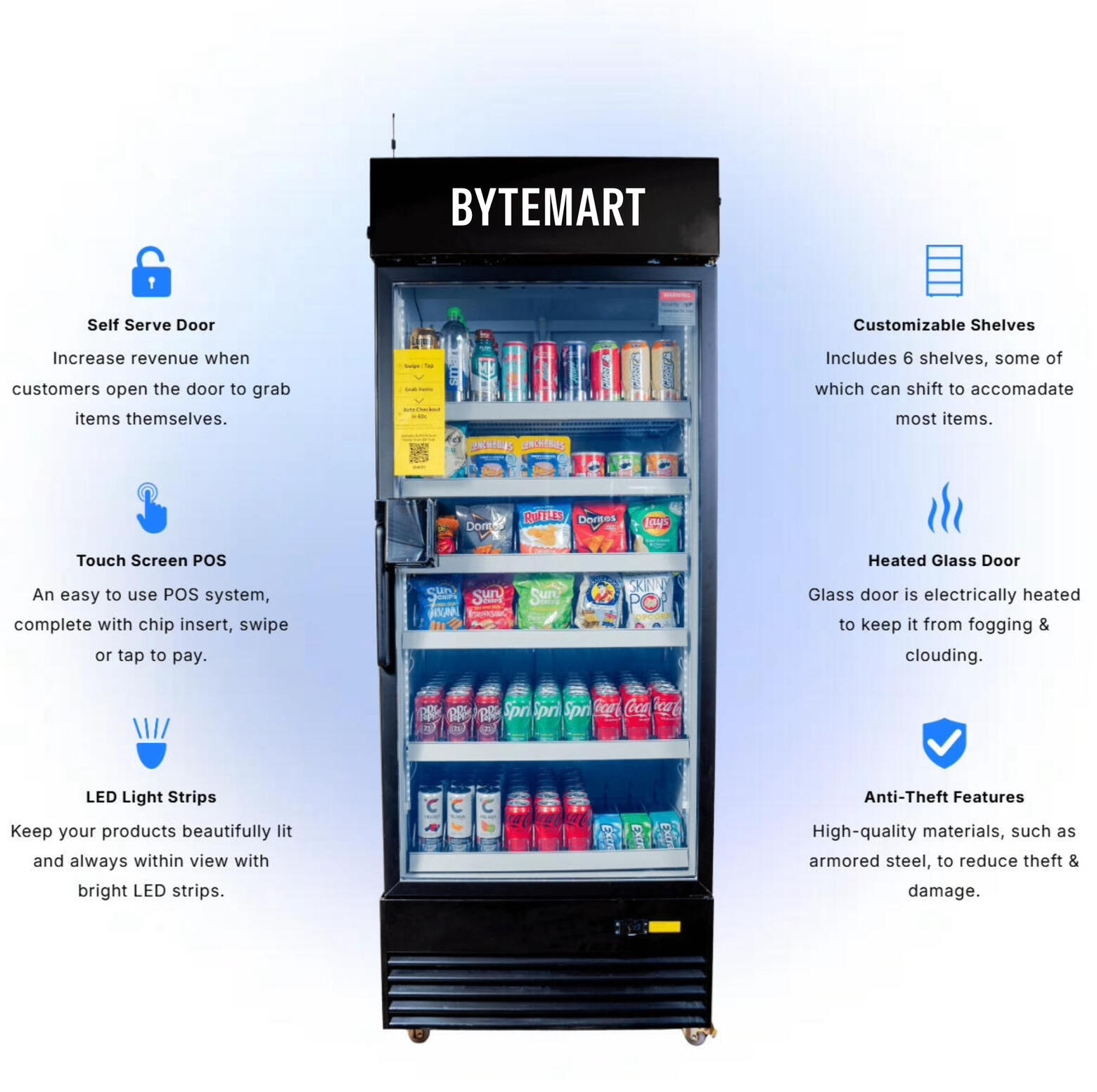 Say goodbye to clunky machines and slow transactions.ByteMart’s AI-powered, grab-and-go vending machines deliver a sleek, modern experience. No buttons. No delays. Just tap, grab, and go.Smarter tech means faster shopping, better inventory, and a premium experience for your customers and employees.